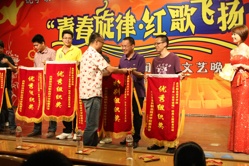 “说学读唱”经典主题教育活动,自学期初启动至今,历时三个多月,活动时间长、普及面广、成果显著,先后开展了典型青年人物事迹展、“忆红色经典•讲爱国故事”主题活动、“律动校园•传唱经典”校园红歌达人挑战赛、“学经典青年人物•说经典成才故事”演讲比赛、“忆红色经典•唱爱国歌曲”大合唱比赛等十余个主题活动。各系团学积极响应学院号召,纷纷组织了各类主题鲜明、特色突出的“说学读唱”经典活动,包括组建经典歌曲“教歌员”和经典故事“宣讲员”、建设“与经典同行”读书会、召开“经典故事大家说”主题班会和“学经典人物”主题团日活动等,深受广大同学的欢迎和好评。根据各系主题活动的开展情况,学工部部长、学生处处长蔡后界在晚会现场为各系部颁发了优秀组织奖。