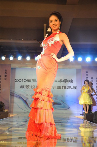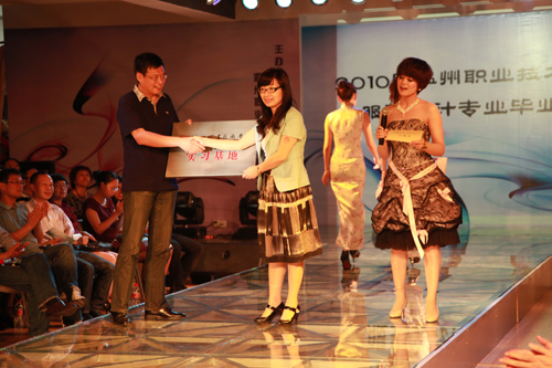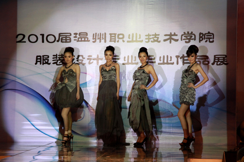6月11日晚19点,温州职业技术学院轻工系2010届服装设计专业毕业设计展在轻工系服装T台表演中心精彩上演,共吸引了60多家企业到场参观。院长丁金昌、副院长王向红、纪委书记何忠等出席了此次活动。温州市外经贸局、市工商局瓯海分局、温州市服装商会、瓯海民营企业协会相关负责人以及瓯海民营企业协会的会员企业等作为嘉宾莅临展演现场并担任评委。