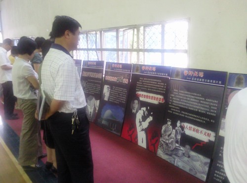 会后,全体教职工集体观看了反腐倡廉警示教育片《梦断敛财路》和《权力的迷途》,并在体育馆二楼观看了反腐倡廉警示教育图片展。