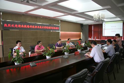 6月23日上午,湖南铁路科技职业技术学院院长万友根一行来我校考察交流2