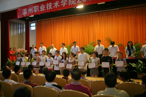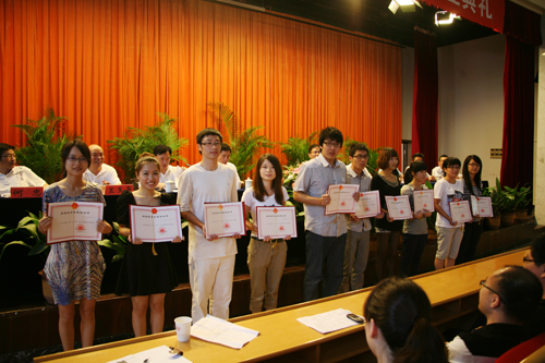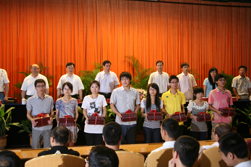 院党委副书记倪集崇宣读了2010学年国家奖学金获得者、省级优秀毕业生名单。陈光天书记等院领导一一为国家奖学金获得者、获得“省级优秀毕业生”和“院级优秀毕业生”称号的同学颁发了荣誉证书。