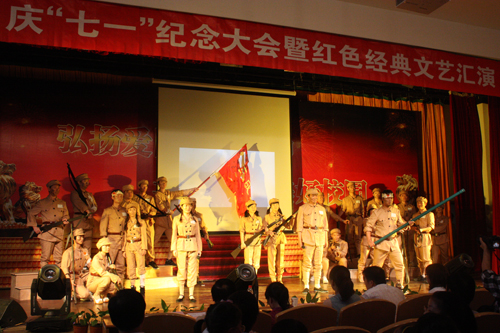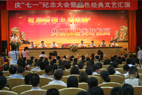 6月29日下午,我院庆“七一”纪念大会暨红色经典文艺汇演隆重举行。作为庆祝建党89周年的贺礼,全院教职工以“弘扬爱国主义精神,共创和谐美好校园”为主题,献上了对党的祝福与礼赞。院领导陈光天、倪集崇、兰玉景、王向红、何忠、朱金荣、陈维彬、徐利群等出席大会。大会由党委副书记倪集崇主持。