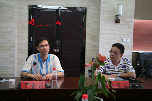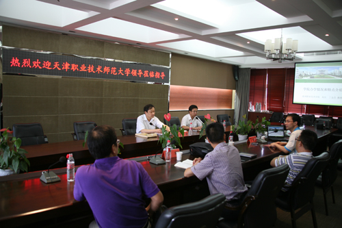座谈会上,丁金昌院长向戚德忠副局长和天津职业技术师范大学校长孟庆国一行详细介绍了我院的办学理念,比如“强化区域性,突出实践性,体现高教性”,“三个三结合”的品牌专业建设策略,并重点讲解了我院“多层次、系统化”的实践教学体系的构建理念、实践,以及近年来学院的办学成果。