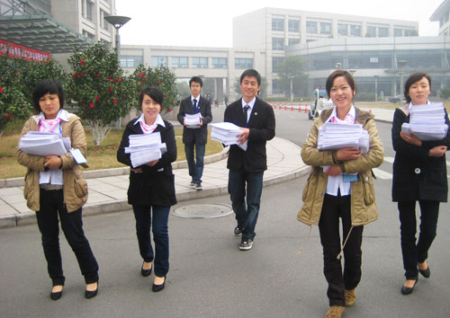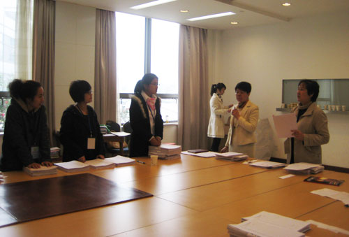 16位学生被分在会务组、简报组、后勤组,协助大会秘书处工作,主要的工作内容有:会议资料的整理准备、会议人员的签到及资料分发、整理讨论有关材料、送材料到各个会议小组、帮助修改简报、审核人员名单和文字录入等。在工作中,同学们勤勤恳恳并勇担重活,在实践中增长了才干,正如金蕾玉同学所言,“通过几天的实习,我们学到了很多书本上学不到的东西,也切身体会到作为文秘人员,一定要学会礼貌用语,注意言行举止。要抓好工作的每个环节,不能忽视工作的任何细节问题。”同学们的这几天的表现也给大会秘书处留下了深刻影响,政协政治处主任用来概括了这些大学生的工作情况:第一,学生职业味比较浓,职业服给人眼前一亮的感觉;第二,学生职业技能比较扎实,能高质量完成交代的任务;第三,明年的政协会议还邀请温职院文秘书专业学生来帮忙。