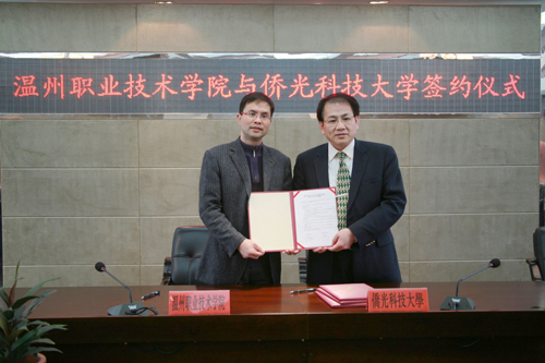 12月8日,台湾侨光科技大学董事长陈伯涛和校长吴德和一行9人来我院参观考察,并与我院在平等互惠原则的基础上,就促进合作办学达成共识。