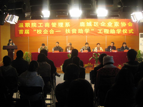 温职院工商系 鹿城区企业家协会“校企合一 扶贫助学”工程助学仪式活动现场