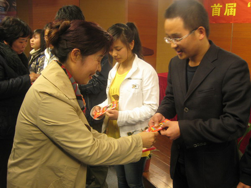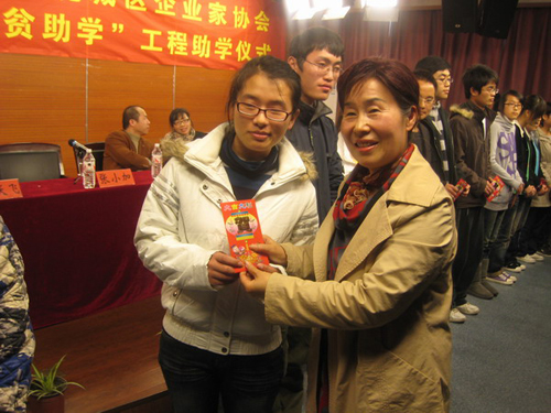 本次活动由温州职业技术学院工商管理系、鹿城区企业家协会主办。以“校企合一 扶贫助学”为主题,企业家们纷纷慷慨解囊,向贫困学子结对助学,用无边的爱心滋润着13位学子干涸的心田,犹如山涧流淌的涓涓溪流,隐忍而绵长。鹿城区企业家协会秘书长杨微微女士深情的说:“作为企业家协会和企业家们能献出自己一份小小的爱心,能够帮助同学们解决暂时的困难,那是值得欣慰的事,希望这份爱心能一棒接一棒的传递下去。”杨秘书长介绍说,今天不光企业家来到这里与同学们结对,还有以前受到过结对资助的我院人文系0601商务英语班毕业的林晓苹同学,找到工作后,今天也加入到结对的行列中来。
