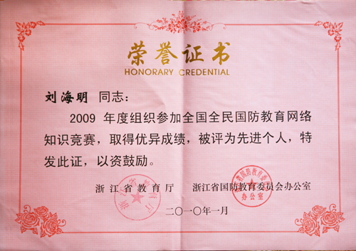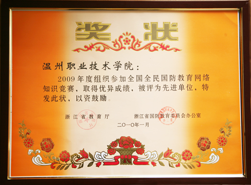 1月25日,全省国防教育专职工作人员会议在省军区召开。会议传达学习了全国国防教育工作会议精神,回顾总结了去年以来全省国防教育工作情况,表彰奖励了参加全国国防教育网络知识竞赛的先进单位和个人,筹划安排了下步国防教育工作任务,并交流探讨了全民国防教育工作创新发展问题。温州职业技术学院、温州医学院、瓯海区国教办、永嘉县国教办等4个单位获得“全国全民国防教育网络知识竞赛”先进单位,同时,我院学生处刘海明老师还被评为先进个人。