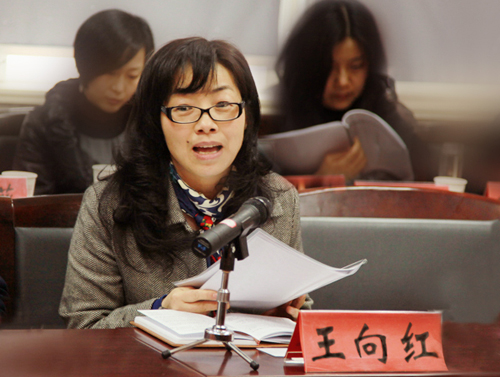 丁丽燕主任向与会领导和专家介绍了人文传播系四个专业在内涵建设方面所做的努力和有待解决的问题,恳请专家们畅所欲言,出谋划策。