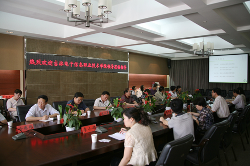 吉林电子信息职业技术学院此行主要是为考察我院职业教育的先进经验,包括学院办学理念,服务区域经济经验,技能型人才培养模式,实训基地建设和学生就业等内容。