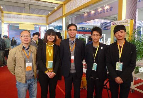 丁金昌院长、党委委员蔡后界处长与代表亚龙科技集团有限公司参展的员工——我院毕业生合影