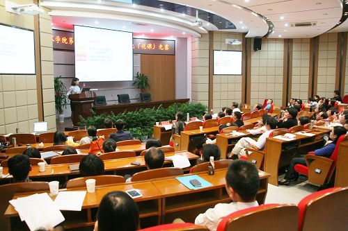 本次说课比赛是浙江省高等学校第七届青年教师教学技能竞赛的推荐评审会,参赛的九位教师都是在系部预选赛的基础上选拔产生。比赛采用抽签决定次序的方式,现场打分、当场公布结果,充分体现了公开、公平、公正的原则;将评出一等奖二名、二等奖三名、三等奖四名,其中一等奖将直接推荐为省级优秀奖人选。