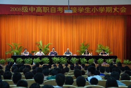 7月12日上午,08级中高职自考衔接学生小学期开学典礼在我院学术报告厅隆重举行。来自温州地区8所重点中职学校的690名自考衔接学生参加了开学典礼。学院副院长兰玉景、保卫处处长赵清弟、成教学院副院长谢肖力等人出席典礼。典礼由成教学院副院长欧阳翰夫主持。