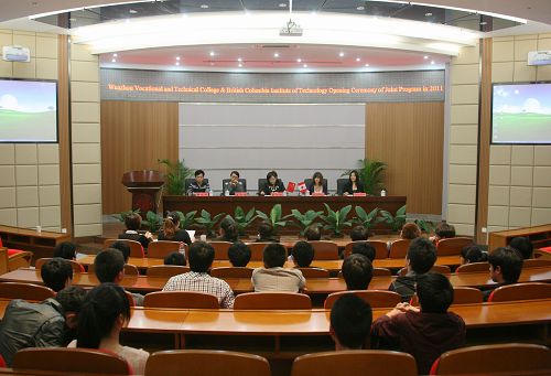 10月27日上午,我院与加拿大不列颠哥伦比亚理工学院(BCIT)联合举办的2011级中加合作班开学典礼在行政楼多功能厅举行。BCIT招生处处长Pat Matthieu女士、国际部经理王宜平女士,我院副院长王向红、教务处处长王志梅、机械系主任吴百中及机械系中加班2011级新生出席了本次典礼。典礼由机械系主任吴百中主持。