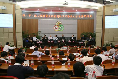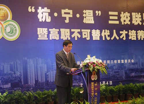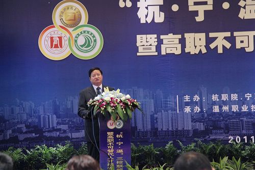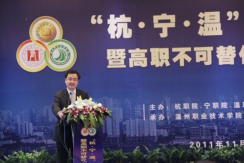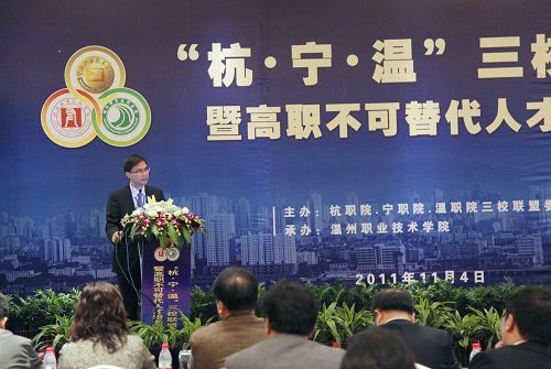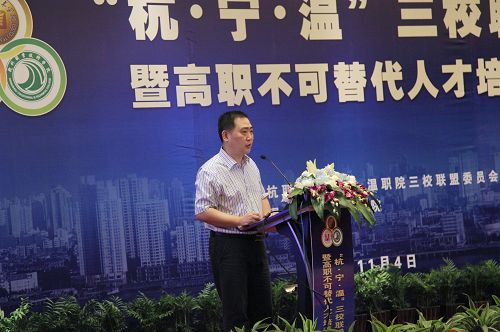 11月4日,“杭•宁•温”三校联盟论坛暨高职不可替代人才培养研讨会在温州举行,这是三校联盟自成立以来的第五次会议。此次论坛以“培养高职不可替代人才”为主题,三校院长围绕高职教育的区域性、职业性和高教性三大属性,探讨高职教育的新理念。