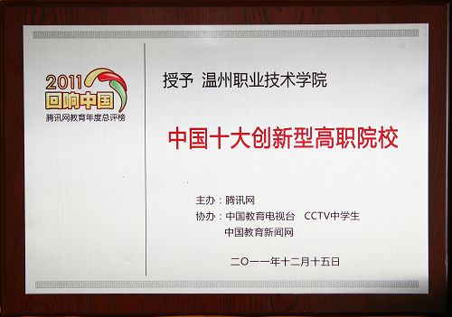 12月15日,由腾讯网主办的2011“回响中国”教育盛典在北京隆重举行,全国教育界泰斗、专家、学者、官员、媒体人及最知名教育机构领军人物600余人出席典礼。盛典现场发布了由广大腾讯网友评选出的2011年度十大教育关键词,颁发了最受关注的年度致敬大奖,并揭晓了19个教育产业价值榜单。其中,我院喜获 “2011中国十大创新型高职院校”荣誉称号,这是我院继去年荣获“全国十大最具就业力高职院校”奖项之后的又一项殊荣。