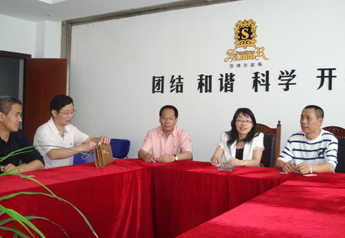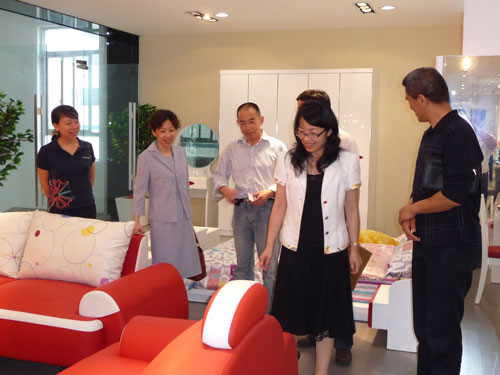 王副院长一行还参观了各家具公司的产品陈列室和生产车间,对家具企业新颖美观的产品赞不绝口。通过调研,我院教师对家具企业生产的状况更增进了了解。当日下午,调研组一行还参观了浙江乔治白有限公司,并与在该公司顶岗实习的05级服装设计专业的学生进行了座谈,了解了毕业生各方面的实习情况。毕业生们普通对目前的岗位和工作感到满意,对学院领导和老师的关怀表示感谢,并表示要好好工作,掌握扎实的专业技能,为学院争光。