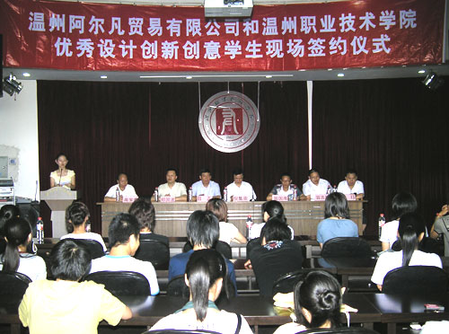 把“奥运祥云”元素设计到皮具腰带上,用古希腊建筑美学中的爱奥尼柱式来设计皮带……在我院举办的首届皮具创新创意设计大赛上,我院选手的创意让许多评委眼睛一亮,更有学生因为作品的创意,而被赞助企业——温州阿尔凡贸易有限公司相中,提前与企业签约,迈入大学校园不久,就提前找到了就业实习“婆家”。