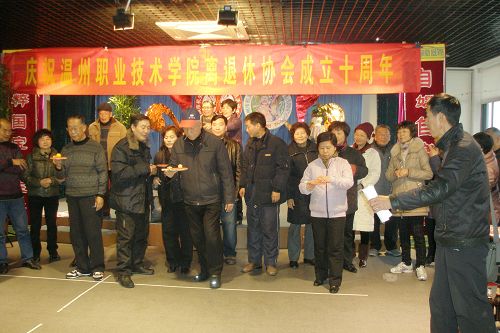 沐浴着辞旧迎新的喜庆,满载着学院领导的祝福,为庆祝离退休协会成立十周年,我院于2011年12月27日下午组织了离退休老同志在市人事局活动中心举行迎新游园活动。院党委副书记倪集崇出席活动,并代表学院党政班子向一直以来关心支持学院的改革和发展的老同志们表示衷心的感谢。倪集崇副书记指出,学院领导班子十分关注老同志的生活,随着工资改革的到位,希望老同志的业余文化生活更加丰富多彩,同时祝老同志们健康长寿,阖家幸福、新春愉快。