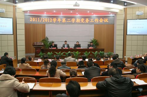 会上,各党务部门负责人、系党总支书记、后勤直属党支部书记结合自身的党建工作特色,分别就本学期党建重点工作进行了汇报。夏晓军副院长在会上强调了加强“平安校园”建设的重要性,并就如何提升党建工作水平提出两种举措,即党建工作与行政工作相结合、党建工作项目化运作。何忠书记通报了2011年度干部廉政教育测试情况,就加强教职员工德育建设的重要性进行了阐述,指出在廉政制度修订过程要遵循“标准明确、流程科学,分层负责、民主决策”的原则。