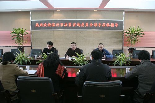 据介绍,作为市委市政府的决策咨询机构,市决策咨询委员会是我市开展决策咨询工作的主体和决策咨询服务的平台,委员会围绕事关温州长远发展的重大战略问题开展咨询研究;围绕市委市政府中心工作,开展科学论证,提供咨询论证服务;整合资源,形成咨询专家网络,打造决策“智库”;分析时政民情,听取民意,集中民智,是党委政府和群众的桥梁纽带。