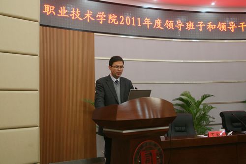 根据省委组织部、省教育工委、市委组织部的工作安排和要求,3月6日下午,我院于行政楼一楼多功能厅举行了学院领导班子和领导干部2011年度考核大会。温州市委组织部副部长杜建平,温州市委组织部干部三处副处长郑祥滩,温州市委组织部干部三处主任科员郑国胜等出席了会议并监督评议。学院领导班子成员,院在职副处及以上中层干部、院级及以上科研院所负责人、正高职称教职工,民主党派、无党派人士代表,院本届“两会”主席团成员,本届省市人大代表、政协委员参加了会议。会议由学院党委书记陈光天主持。