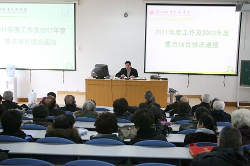3月8日上午,我院2012年离退休老干部形势报告会在成教学院召开。院党委书记陈光天在会上作工作报告,传达贯彻了市第十一次党代会精神,通报了学院2011年度工作及2012年度重点项目情况。140多名离退休老同志参加了本次会议。会议由离退休管理处处长张小加主持。