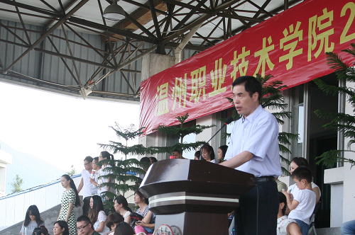 会上,党委书记陈光天作了重要讲话。他代表学院党政领导班子向军分区海防营的领导及全体教官表示衷心的感谢!对圆满完成军训任务的全体新生表示热烈的祝贺!军训带给大家的不仅是身体的锻炼,更是意志的磨练。陈书记肯定了同学们在军训过程中取得的成绩,并对2013级新生提出了殷切希望。他强调,学院的“一训三风”非常凝练地刻画了温职精神,希望同学们按照“尊师 律己 勤学 善用”的学风要求,努力把自己打造成“厚德长技、励学敦行”的优秀人才。
