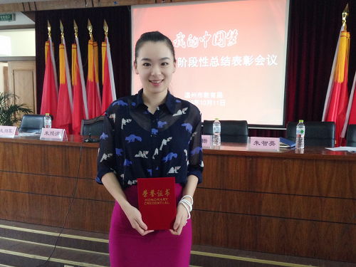 会议对温州市首届“十大育人先锋”、“党员之星”获得者等市教育系统开展“我的中国梦”主题教育活动以来涌现出的各类先进进行了表彰。我院吴冰老师荣获温州市“党员之星”称号。