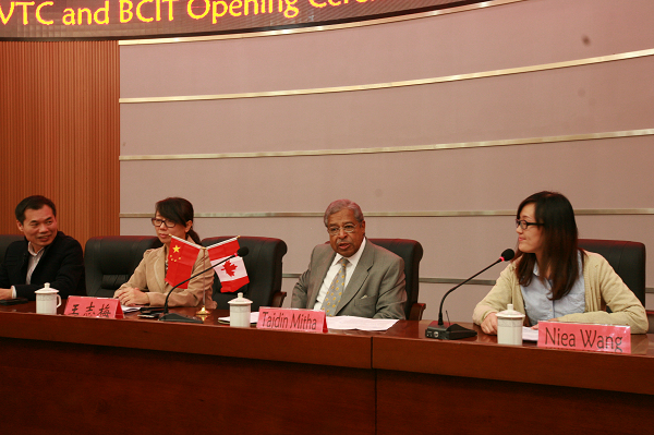 Tajdin Mitha先生则在讲话中勉励新生们,要不断地获取知识,终生学习将是你们的任务,你们将拥有与众不同的双文凭国际资质。同时,Mitha先生表示温职院和BCIT都致力于一致的办学宗旨、目标,BCIT对两校的合作充满信心,希望今后能够加强联系,进一步深化合作。