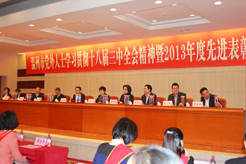 11月28日,在温州市人民大会堂隆重召开温州市党外人士学习贯彻中共十八届三中全会精神暨2013年度先进表彰会。大会由市委统战部常务副部长许若真主持,市委常委、统战部部长陈作荣发表讲话。表彰会上,我院民建会员鲁丹萍教授被授予2013年度“百名党外人士建功工程”示范典型(共20名)称号。