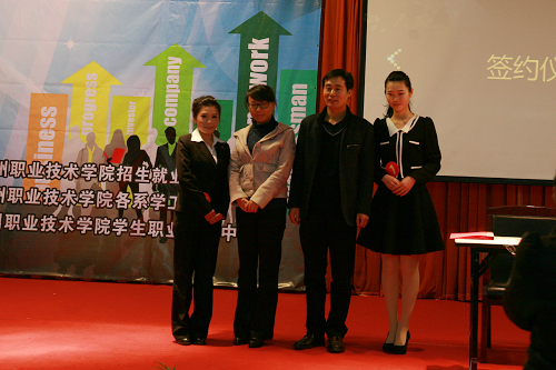 在学院王志梅副院长的鉴证下,康奈集团领导与财会系黄蓉蓉、工商系朱茜蒙2位同学现场签订了准员工招聘意向书,获得“职场绿卡直通车”,待她们完成学业后,可直接到康奈集团公司上班。最终,经过评委现场评分,“非我莫属”挑战职场之星和一二三等奖选手均顺利产生,并赢得了由康奈集团提供的丰厚礼物。