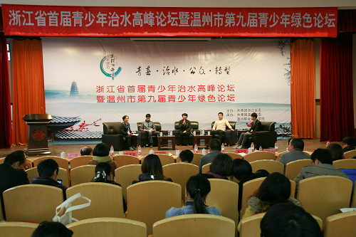 在论坛主旨发言环节,中央人民广播电台记者、2007年绿色中国年度人物汪永晨做了全球气候气候变化对中国江河的影响的演讲,全面分析了全球气候变化对中国江河的影响,并号召全体志愿者现在要保护水环境,保护身边的绿色家园。来自台湾高雄的绿色协会理事长以台湾治水为案例,将台湾地区的治水经验跟现场的志愿者进行了交流,为浙江的治水提供了宝贵的经验。浙江省水利勘测设计院的副总工程师黄昉则介绍了浙南水乡的规划,为打造建设美丽浙南水乡奠定了理论基础。