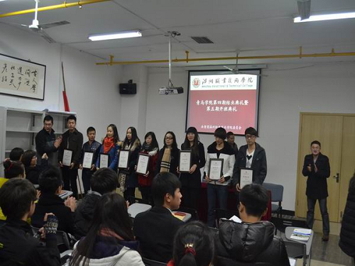 12月30日晚,温州职业技术学院青年马克思主义者培养学院第四期培训班结业典礼暨第五期培训班开学典礼在院大学生活动中心党员活动室隆重举行。副院长王向红、学工部部长叶吉波、学工部副部长吴冰、团委副书记刘海明和各系团总支书记出席了本次活动。