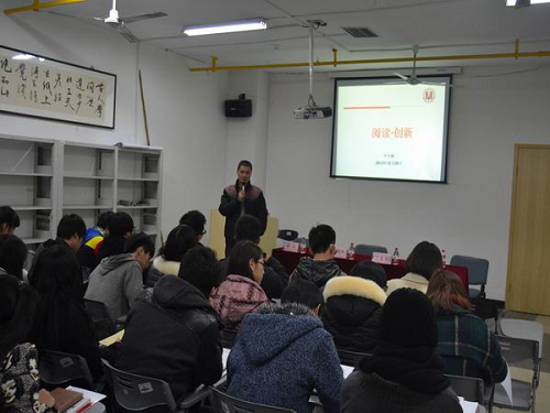 会后,“青马学院”的学员们听取了学工部部长叶吉波同志的专题讲座——《阅读与创新》。叶吉波部长分别从我院学生阅读现状、阅读与创新、坚持阅读的途径、名家阅读的案例等四个方面,向青马学员系统讲述了大学生储备知识量的重要性;他强调大学生不仅要具有阅读能力,还要具有创新能力;并向青马学员推荐了《本领恐慌》、《麦田里的守望者》等书籍。
