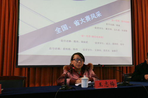 王志梅副院长在会上作了总结讲话,她对我院积极组织参赛的系部、取得优异成绩的指导教师和学生给予了高度评价,同时也鼓励更多的学生能以获奖者为榜样,积极进取,努力学好专业知识,投入到技能训练中来,投入到技能大赛上来,将来成为职场的精英。要求发挥大赛引领作用,建立技能大赛反馈指导技能教学机制,使全体师生共享技能大赛的经验与成果。最后,她还对今后的技能比赛寄予殷切希望。