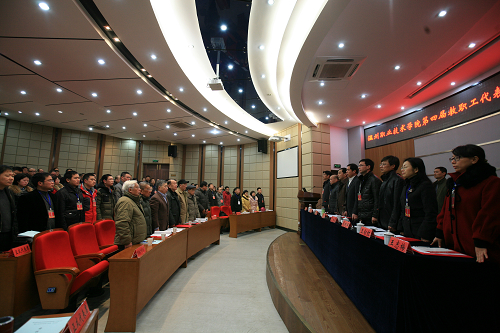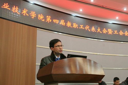 1月17日,学院第四届教代会暨工代会第一次会议(以下简称:“双代会”)在正德楼罗山厅隆重召开。教职工正式代表和列席代表共160人参加了会议。会议由院党委副书记、工会主席夏晓军主持。