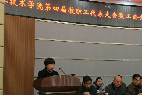 随后,学院党委副书记、工会主席夏晓军汇报工会工作报告。夏书记对学院过去五年工会工作总体情况进行了回顾和总结,并布置学院第四届工会工作的主要任务:围绕学院中心工作,团结动员广大教职工为学院的改革与发展作出新工作;切实维护和发展教职工利益;把群众路线作为工会工作的生命线;加强工会自身建设,强化责任意识,不断提高工会工作的整体水平。