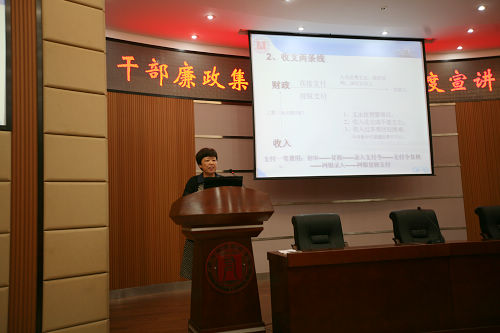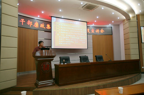 5月16日下午我院在正德楼罗山厅举行2014年度干部廉政集体谈话暨财务制度宣讲会,纪委书记何忠主持会议并作干部廉政集体谈话主旨报告,学院纪委委员、财务处长李洁作财务制度宣讲,学院在职科级、处级干部参加会议。
