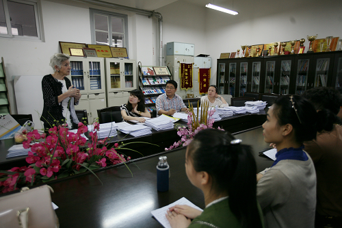 外审员Moira Dryland女士此次课业评审不仅仅是一次普通课业评审,还关系到我院第一届BTEC中英班学生的毕业、留学问题,我院非常重视此次外审,党院办主任季凌斌和信息技术系系主任田启明陪同接待了Dryland女士,田启明主任还有热情向Dryland女士介绍了我院及我系的办学新进展。