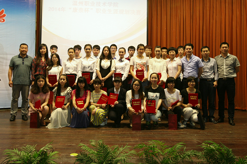 6月4日下午,温州职业技术学院2014年“康奈杯”职业生涯规划决赛在学院明德楼树人堂隆重举行。副院长王向红、各系党总支书记、学工办主任、辅导员、招生就业处全体成员员出席本次活动。康奈集团副总经理吴圣能、人力资源经理任培广,温州市铁投集团公司办公室副主任傅唯,温州自来水分公司人力资源处副处长项君、温州青年创业促进会秘书长王聪乾以及学院招生就业处处长谷智静、学工部部长叶吉波等受邀担任本次大赛的评委嘉宾。