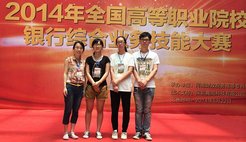 6月22日,2014年全国大学生银行综合业务技能大赛在郑州河南财政税务高等专科学校隆重举行,财会系全安娜、韩燕、陈乐强三位学子在陈煦煦、王赛芝老师的精心指导下,凭着扎实的功底脱颖而出,取得团体二等奖,三项单项二等奖的优异成绩。
