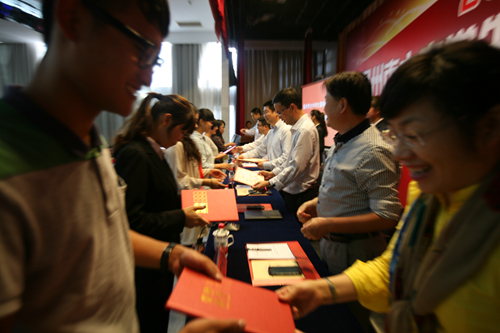 学院丁金昌院长致辞。丁院长对长期支持和关怀学校发展的社会人士表示感谢,并主要介绍了我院与专业实习紧密结合,以“三进一留”为主要内容的暑期社会实践活动。他希望通过社会实践活动培养学生良好的行为习惯,提高学生综合素质,开拓学生就业渠道,深化校企合作,创新高职社会实践新模式。