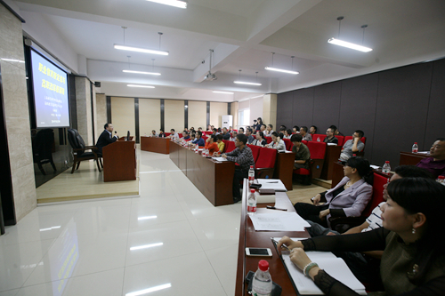 宁锐副处长从召开会议及印发实施《关于加快发展现代职业教育的决定》等文件的重要意义、加快发展现代职业教育的主要思路、全面贯彻落实会议精神的重点工作等方面向我们讲述加快发展现代职业教育对经济社会发展的重要意义。在认真听取宁处长的精彩讲座之后,与会领导纷纷向宁处长提出关于职业教育发展的困惑,宁处长给予了一一解答。整场讲座,互动频繁,与会领导受益匪浅,又一次开阔了视野。