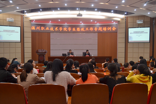 11月12日下午,我院在正德楼罗山厅召开学生思政工作专题培训会。培训会邀请温州医科大学党委副书记唐闻捷博士作题为《加强辅导员队伍建设,提升大学生思想政治教育工作质量》的讲座,各系书记、学工办主任、思政辅导员、全体新生班主任和学生处全体人员参加了本次会议。会议由副院长王向红主持。