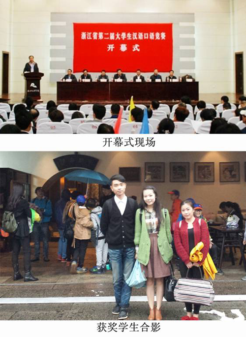 11月8日,浙江省第二届大学生汉语口语竞赛在绍兴文理学院落下帷幕,我校代表队三名学生经陈佳佳和汪德宁老师的精心指导,在决赛中表现出色,经过诗文朗诵、即兴演讲、回答评委提问等3个环节的激烈角逐。获专科组一等奖2位和三等奖1位。其中,文秘专业徐犇同学和会计专业黄蓉蓉同学均获一等奖的好成绩,姚竹同学获三等奖的好成绩。