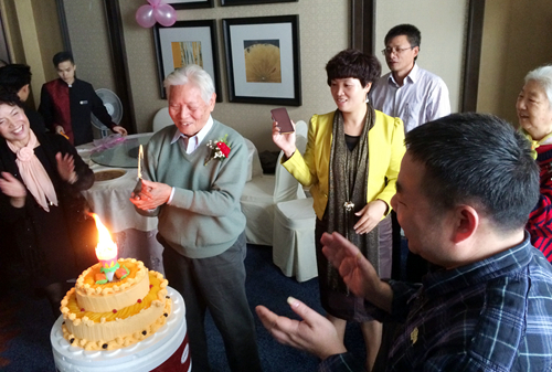 今年,我院70岁以上逢五、逢十的以及90岁以上的离退休老同志共有20位,其中年龄最大的是一分会的李庆和老师93岁。因为老同志身体不适或在外地等原因,参加集体祝寿活动的共有14位老寿星。学院党委副书记夏晓军代表学院向各位老同志致以诚挚的问候,并祝各位老寿星身体健康、生日快乐!他说,老同志曾经为学院的改革和发展做出过重大的贡献,是学院的宝贵财富,学院一定会积极落实好老同志的政治待遇和生活待遇,多为老同志办实事、办好事,把学院关爱老同志的优良传统发扬光大,希望老同志一如既往的关心和支持学院的工作!最后夏书记和全体寿星亲切合影留念。