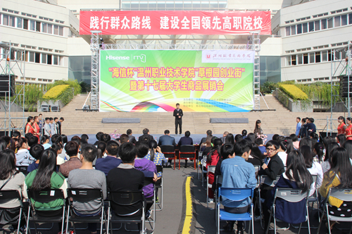 11月23日,温州职业技术学院“草根创业街”暨第十七届大学生商品展销会在明德广场隆重开幕。此次活动,是由共青团温州职业技术学院委员会主办、工商管理系承办,海信温州分公司赞助的大学生创新创业教育活动和具有校园特点的大学生创业实践活动。活动为期两天。