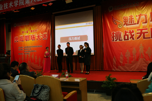 大赛自11月启动以来,历经全院海选、初赛、复赛等环节。最后12名选手晋级决赛。决赛分三个环节:第一环节自我介绍(含亲友推荐视频)。选手们各显神通,打动人心的自我介绍过后,班主任、专业老师、辅导员、同学等纷纷通过VCR的形式说明选手适合应聘岗位的优势和能力,并为选手加油鼓励。第二环节职业技能展示。每位选手结合自己的岗位意向通过才艺展示的形式表现职业核心能力,选手们通过现场展示和情景表演,传达了个人对意向职业精神内涵的深刻理解。第三环节压力面试。由评委现场给每一位选手随机提问,选手们巧妙机智的回答一一化解了评委的“刁难”,选手妙语连珠,赢得满堂喝彩。
